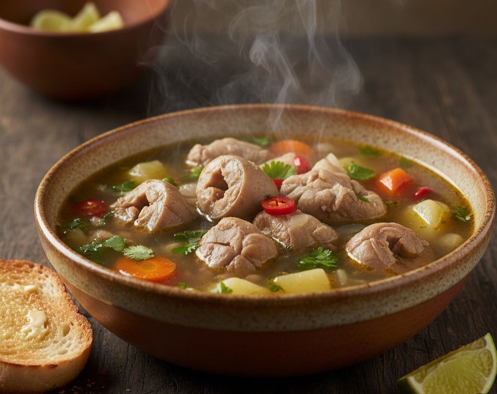 - Το υλικό: Το κύριο συστατικό είναι ο πατσάς (στομάχι αγελάδας) σε έναν κόκκινο ζωμό από τσίλι, κρεμμύδια και λάιμ.