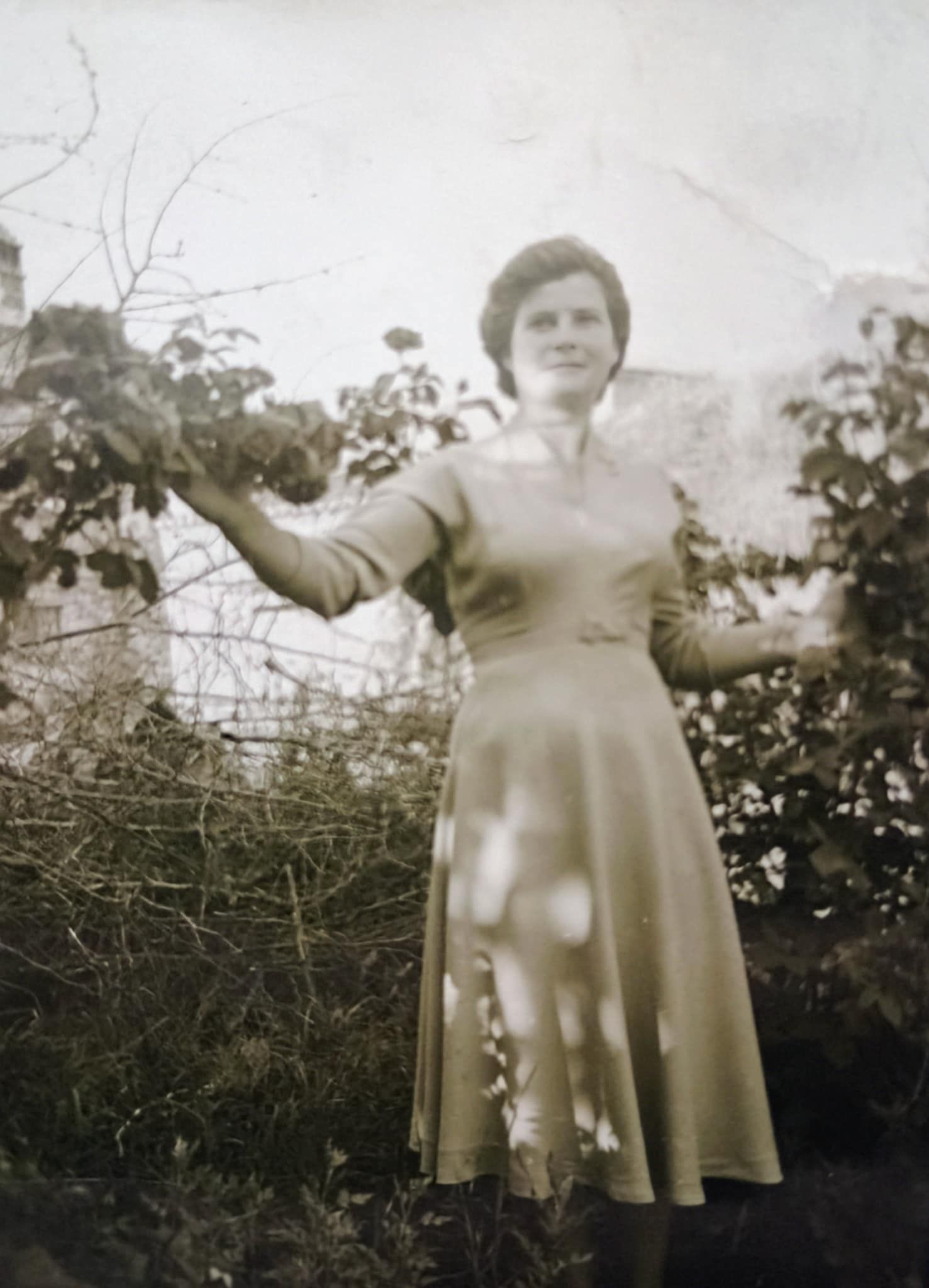 Δεν έκανα πολύ, παιδάκι μου. Ε πήγαμε για καλύτερα ας πούμε. Ε τον γιο μου πού θα τον αφήσουμε; Αντε, τη μικρή στην πεθερά. Ε λέμε θα πάρουμε τον Μ. μαζί μας να αφήσουμε το κορίτσι. Πήγαμε εκεί, σε καλό μέρος ήμασταν, αλλά ήταν εγώ που πήγαινα η ώρα νύχτα το βράδυ κι ερχόμαν πρωί. Γερμανία έτσι είναι. Δεν θες; Σε λέει, άιντε, βεκ! Στο Βερολίνο ήμαν, σε μηχανή με καρφιά. Είχες μπροστά σ’ τη μηχανή κι έπεφτε κι έφταχνε το κεφαλάκ’. Έφτιαχνα πολλή δουλειά, ήμασταν δυο μαζί, η μία δεν ήθελε τόσο πολύ να δουλέψει, εγώ ήθελα να δουλέψω… αφού πήγαμε, να κάνουμε… και ξέρεις πόσοι πήγαμε εκείνη τη χρονιά από ΄δω; Εγώ, η Χ., η Ε. του Τ., η Μ., η Α., του Π. η μάνα… Έκανάμε χαρτιά και φύγαμε, κατάλαβες; Εγώ θυμάμαι με το πλοίο. Ήρθαν και μας πήραν, μας έκαναν τραπέζι, δεν μπορώ να πω. Είχαμε ένα χάιμ, ένα σπίτι ανοιχτό και πόρτες ας πούμε, οι γυναίκες ήμασταν. Και μετά έκανα χαρτιά εγώ και ήρθε ο άντρας μου με τον Μ. Γιατί δεν μπορούσαμε να τον αφήσουμε αλλού πουθενά, τον αφήναμε στο σπίτι, εκείνος ήταν πρωινός, εγώ ήμαν βραδινή. Έβγαινε κάτ’, γυρνούσε. Ήταν ένας παππούς καλός και τον έβλεπε αλλά ο γιος μου δεν άκουγε. Γυρνούσε. Και τότε ήταν… να χάσεις παιδί… σε ζητάν χρήμα να δώσεις για να πάρς το παιδί. Εμείς μόλις πήγαμε, τι χρήμα να έχουμε;… Εγώ, λέω, θα φύγω, τον λέω τον άντρα μου. Λέει, κι εγώ θα φύγω. Αν καθόμασταν… τι να κάνουμε, πουλάκι μου…