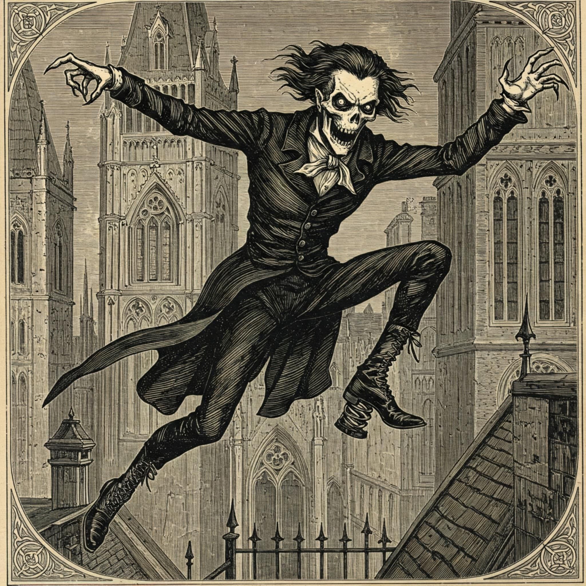 Είναι 1837 και στο Λονδίνο αρχίζει η δημοσίευση σε σειρές του Όλιβερ Τουίστ του Ντίκενς, η Βασίλισσα Βικτώρια διαδέχεται τον Γουλιέλμο Δ’ στον θρόνο και ανοίγει η πρώτη υπεραστική σιδηροδρομική γραμμή στον κόσμο, συνδέοντας το Μπέρμινχαμ με το Λίβερπουλ. Ανάμεσα στο πάνθεον των διαχρονικών αστικών μύθων, λίγες φιγούρες είναι τόσο αινιγματικές και τρομακτικές όσο ο Σπρινγκ-Χηλντ Τζακ, μια φασματική οντότητα που τρομοκράτησε τη Βικτωριανή Αγγλία με τα απίστευτα άλματα και τη φλογερή του ανάσα.