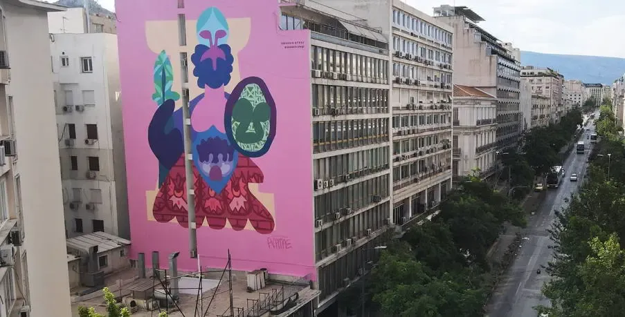 Ο INO, ένας από τους διεθνώς πιο αναγνωρισμένους καλλιτέχνες του δρόμου στην Ελλάδα, έχει αφήσει το στίγμα του σε όλη την Αθήνα, και το "Apocalypse Now" στο Ψυρρή είναι αναμφισβήτητα το πιο εντυπωσιακό έργο του στην πόλη. Αυτή η τεράστια τοιχογραφία μιας μασκοφόρου γυναίκας με μάτια που μεταφέρουν μια αίσθηση δυσοίωνης προοπτικής μιλάει για τις κοινωνικές αγωνίες και προκλήσεις που αντιμετωπίζει η πόλη. Το χαρακτηριστικό στυλ του INO, που συχνά χαρακτηρίζεται από μελαγχολικές και εντυπωσιακές εικόνες, εμφανίζεται δυναμικά εδώ, προσκαλώντας σε περισυλλογή για την κατάσταση του κόσμου.