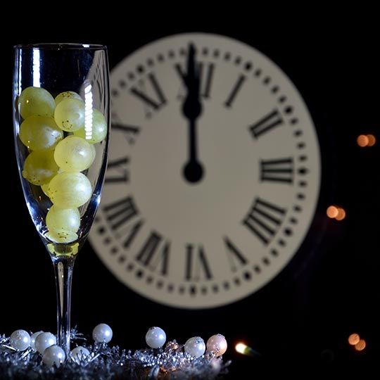 Στην Ισπανία, η αντίστροφη μέτρηση δεν γίνεται μόνο με φωνές. Με κάθε χτύπο του ρολογιού τα μεσάνυχτα, οι Ισπανοί πρέπει να φάνε ένα σταφύλι — συνολικά 12 σταφύλια για τους 12 μήνες του έτους. Αν καταφέρεις να τα καταπιείς εγκαίρως, σε περιμένει μια χρονιά γεμάτη ευημερία.