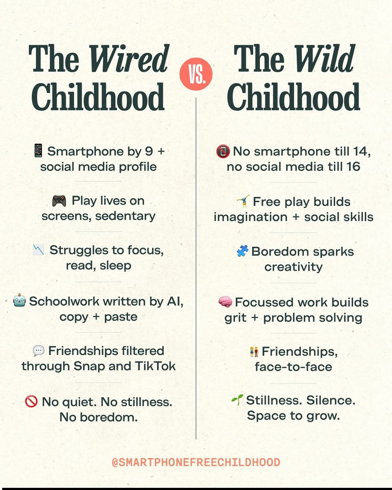 - Όχι smartphone πριν τα 14: Αντικατάσταση με "dumbphones" (κινητά με πλήκτρα) που επιτρέπουν μόνο κλήσεις και μηνύματα για λόγους ασφαλείας.