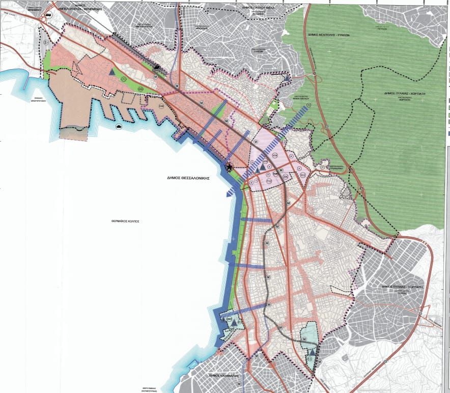 Η σύγχρονη πόλη ανασχεδιάστηκε από το 1917 ως το 1950, ως μια μοντέρνα και λειτουργική πόλη, που ελάχιστη σχέση διατηρεί με την παλιότερη εικόνα της. Στον ανασχεδιασμό πρωτοστάτησε μια ομάδα αρχιτεκτόνων με επικεφαλής τον Γάλλο αρχιτέκτονα Ερνέστ Εμπράρ. Οι σχεδιαστές επέλεξαν ως πρότυπό τους το Βυζάντιο. Η τέλεια εφαρμογή ωστόσο αυτού του σχεδίου εφαρμόστηκε μόνο στην οδό Αριστοτέλους και στις πλατείες Αριστοτέλους και Ελευθερίας.